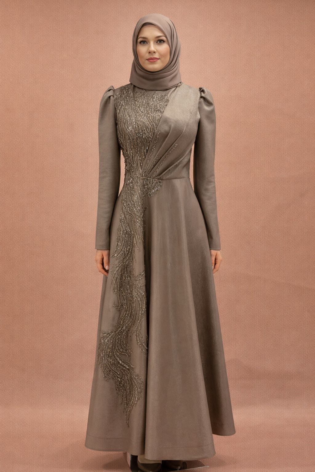 Asimetrik Taş İşlemeli Tesettür Abiye