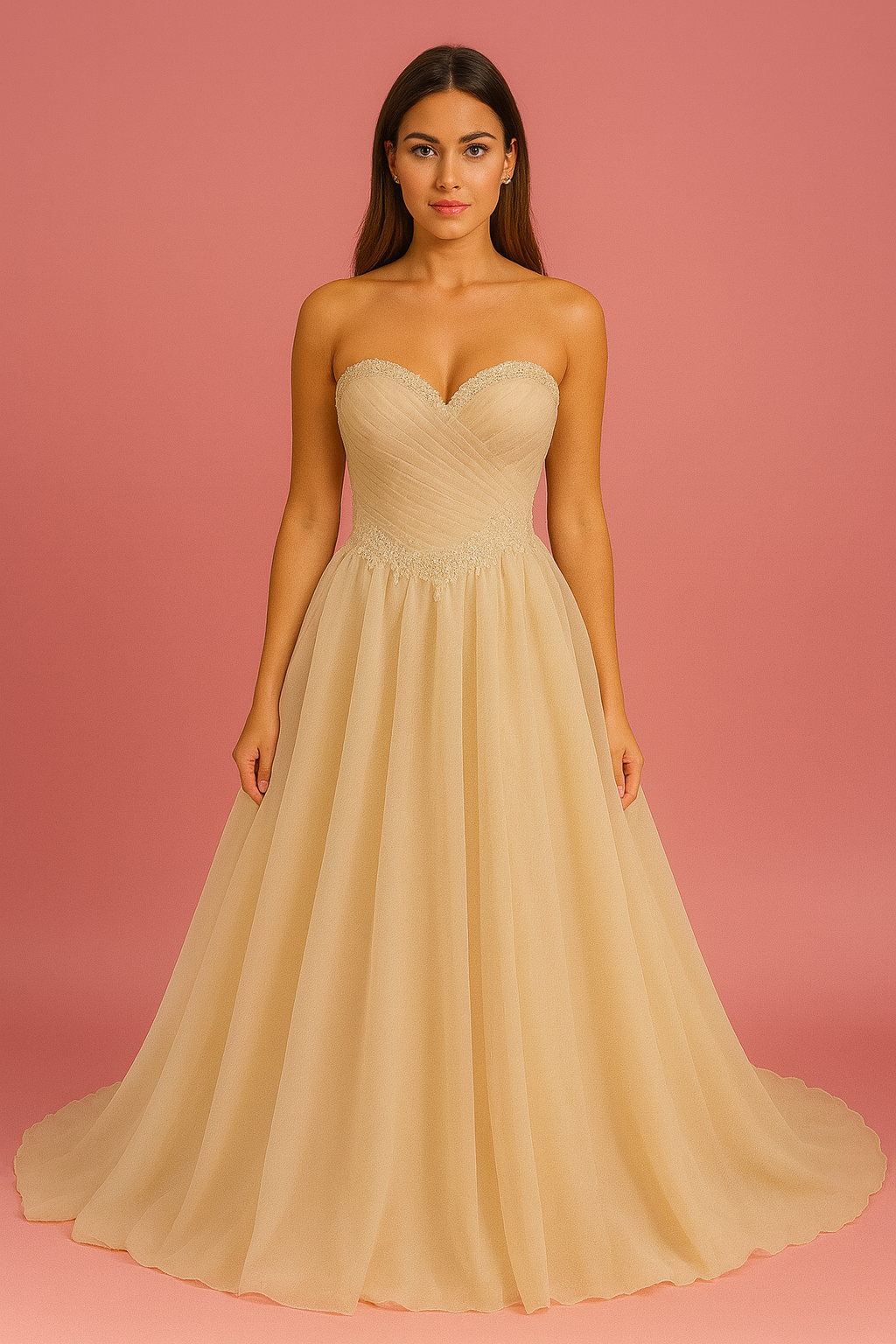Şampanya Şifon Straplez Zarif Tasarım