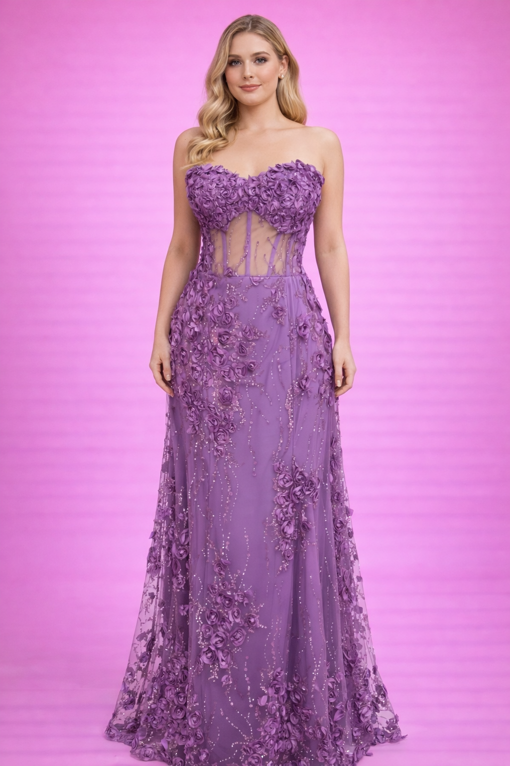 Straplez Üçboyut Çiçek Detaylı Balık Abiye