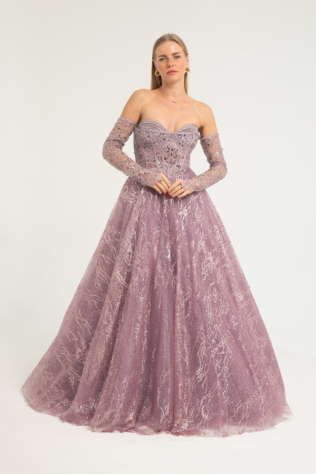 Tek Kol ve Işıltılı Tasarımlı Abiye