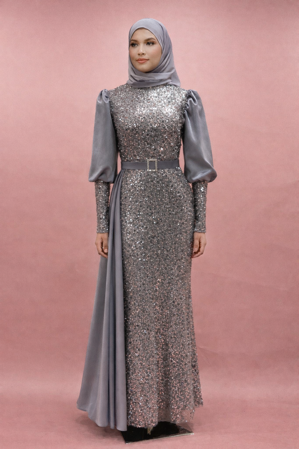 Payetli Kemerli Tesettür Abiye