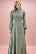 Vizon Taş İşlemeli Drapeli Tesettür Abiye