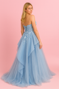 3D çiçek işlemeleri, kalp yaka formu ve kat kat tül görünümüyle romantik bir duruş sunan bu zarif tasarım; hafif dokusu ve akıcı siluetiyle şıklığı ön plana çıkarır.