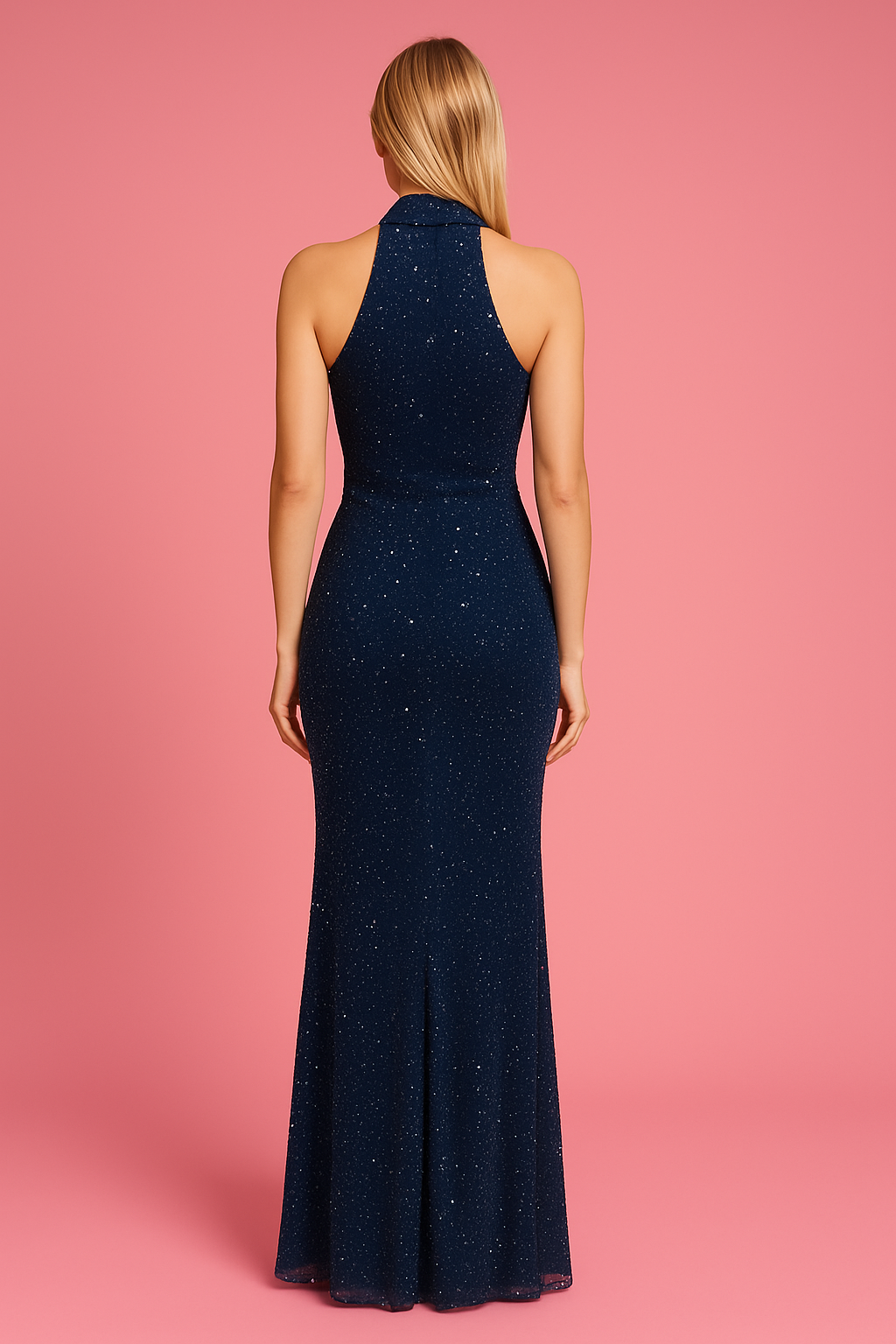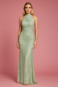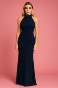 Halter Yaka Dantel Taşlı Abiye