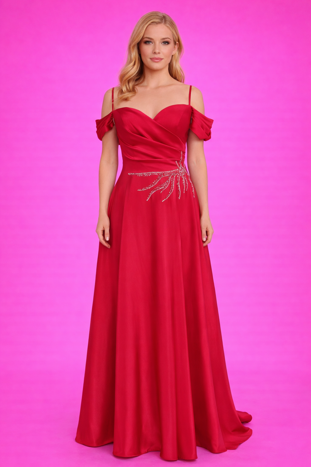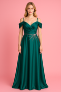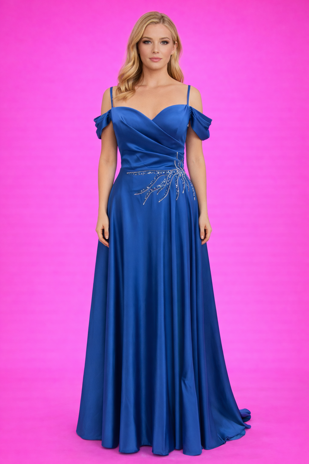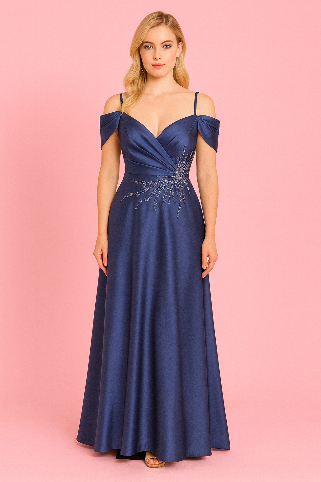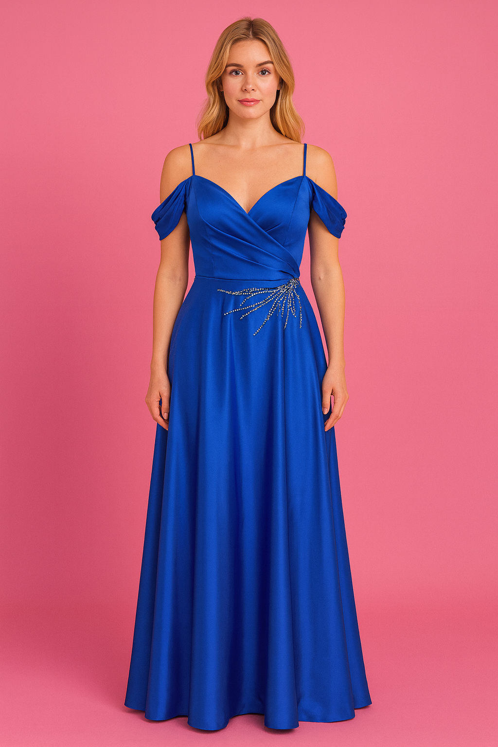 Işıltılı Omuz Açık Zarif Saten Abiye