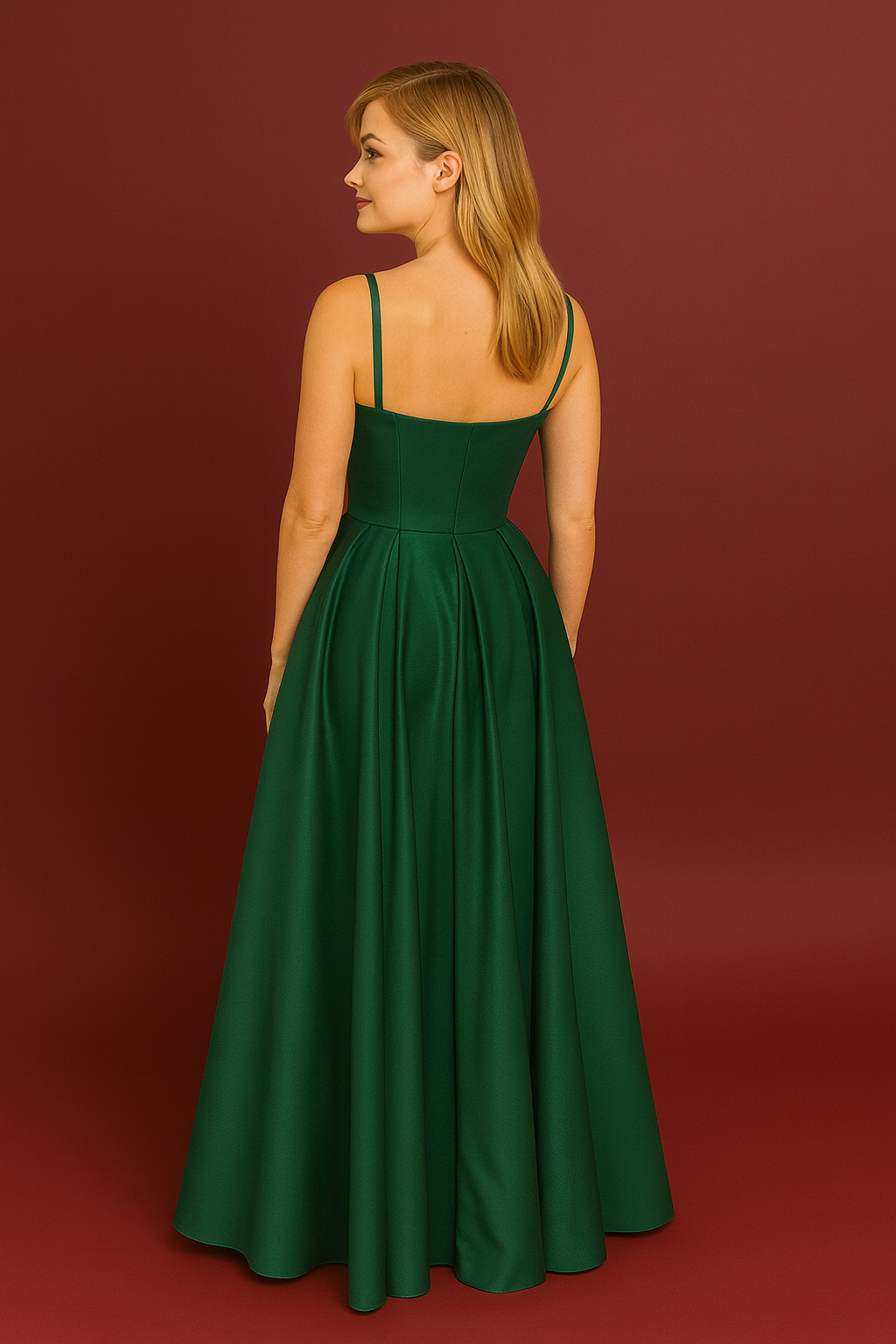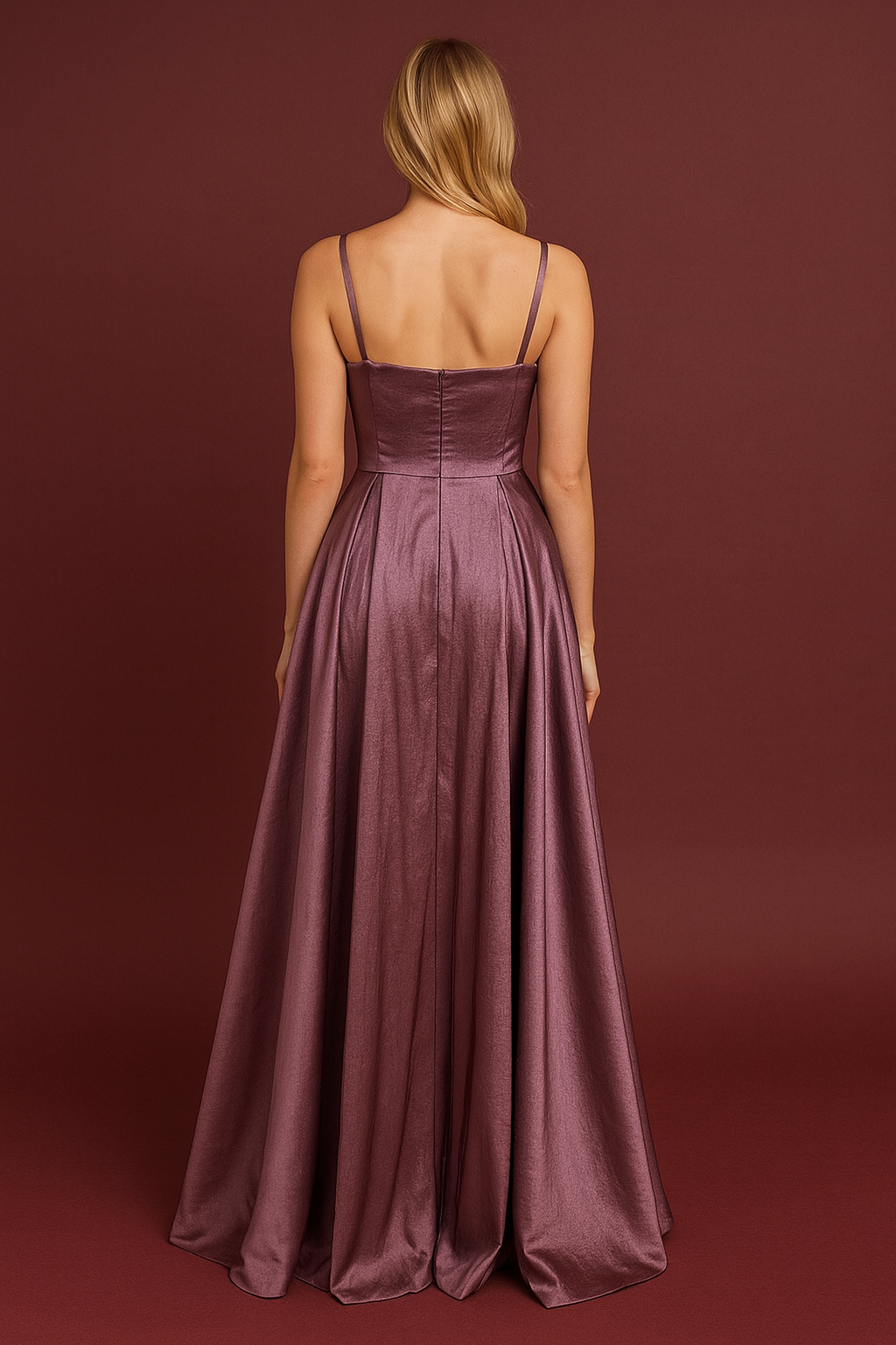 Askılı Tafta Drapeli Uzun Abiye