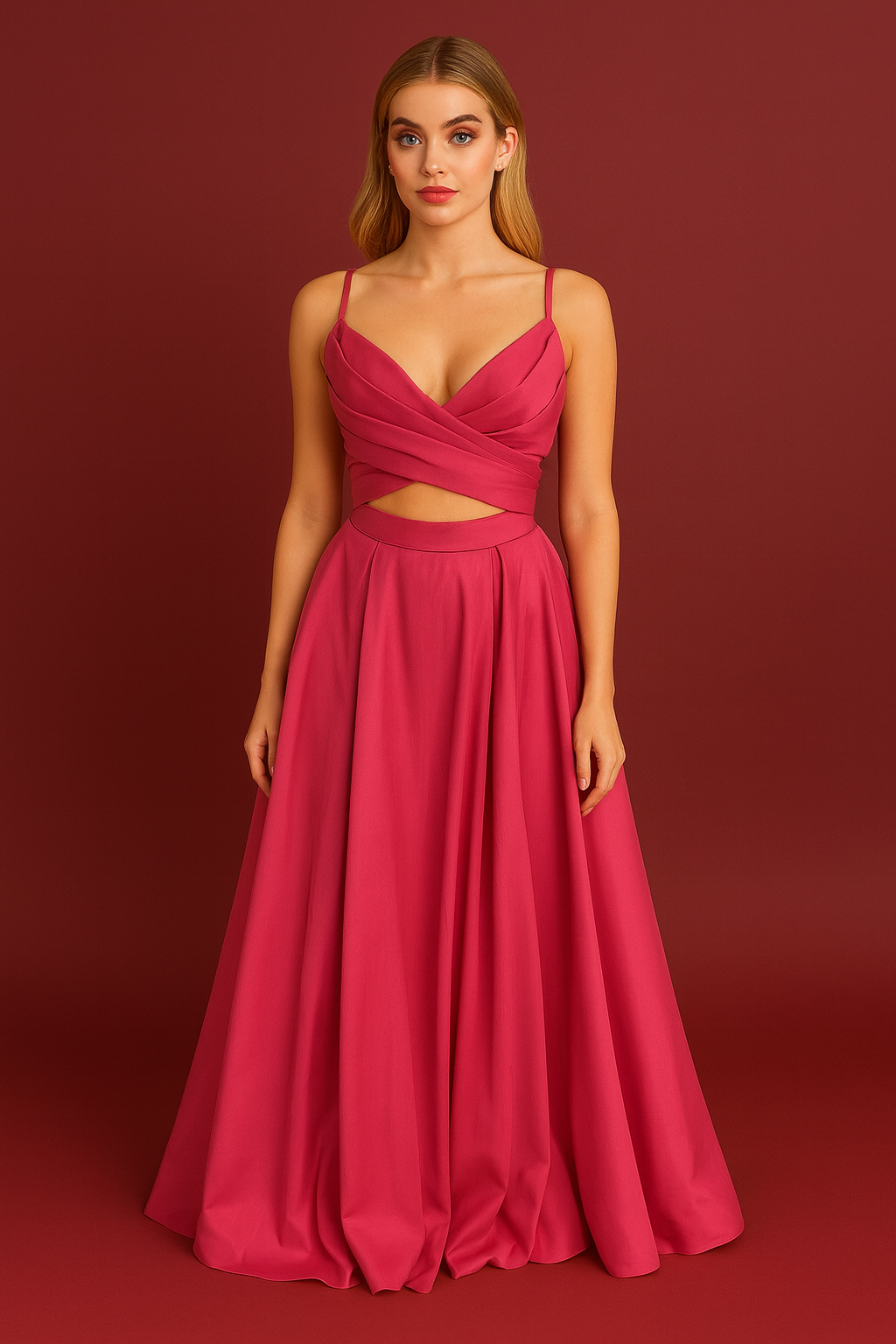 Göğüs kısmındaki çapraz form ve beldeki modern cut-out detayıyla öne çıkan, akıcı saten dokusuyla zarif bir siluet sunan özel bir tasarım. Romantik lila tonu ve akışkan etek formu ile şık davetler için ideal bir görünüm sağlar.