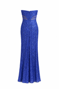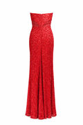 Straplez yakası ve vücudu saran formuyla iddialı bir görünüm sunan bu tasarım, baştan aşağı uzanan ışıltılı dokusuyla sahne ışıklarını üzerinize çeker. Bel kısmındaki transparan geçişler ve drape detaylı hareketli etek yapısı, modern ve göz alıcı bir silüet oluşturur. Davet, gala, nişan ve özel kutlamalarda etkileyici bir stil arayanlar için ideal.
