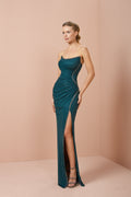 Zümrüt Yeşili Yırtmaçlı Gece Elbisesi